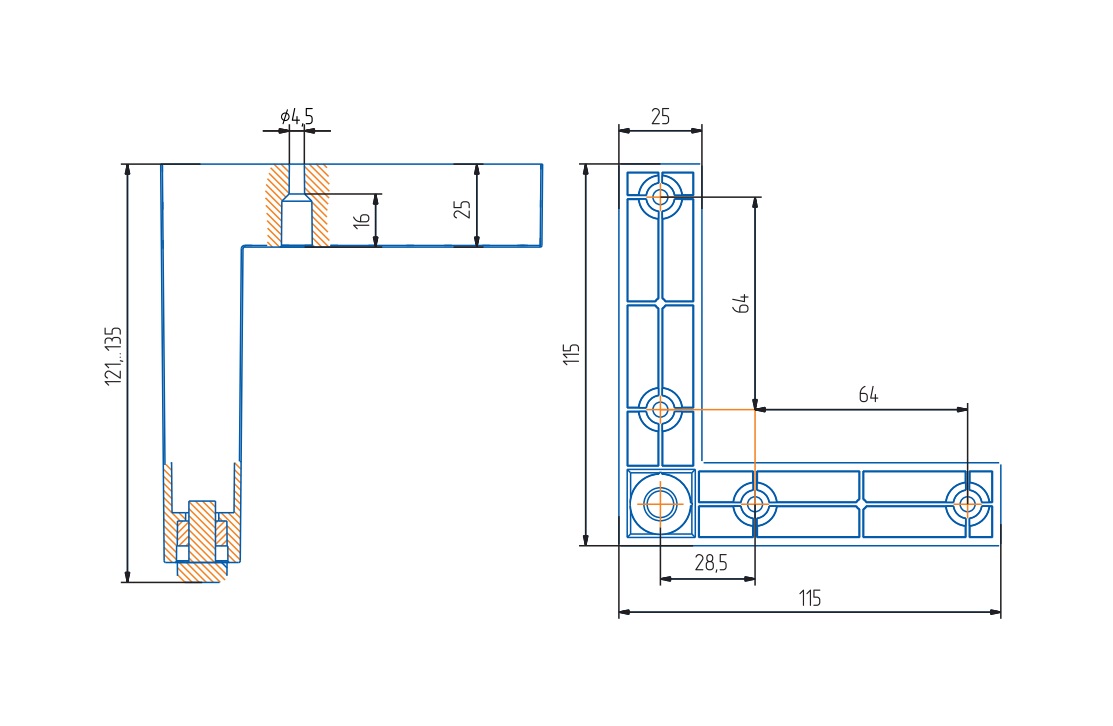 Опора регулируемая угловая ОРУ 120-К хром матовый