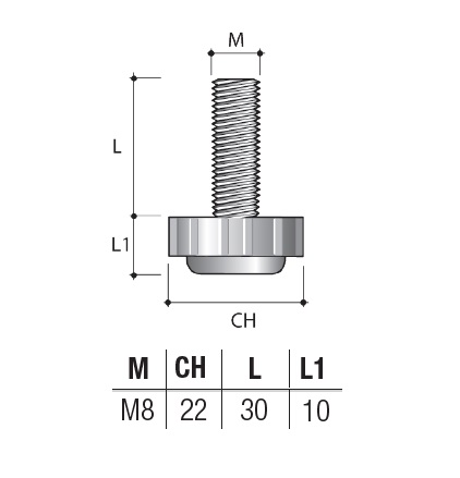Опора регулируемая M8x30, D22 арт.PI06PNE