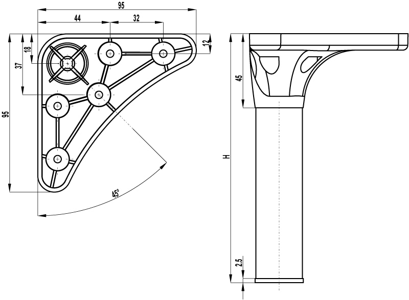 Опора мебельная нерегулируемая X-042 150 ФП - черный матовый