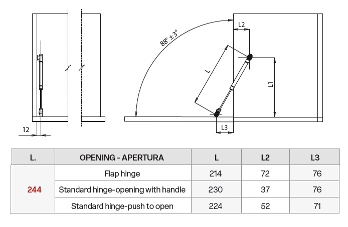 Газлифт открытие вниз d=12мм 244мм, шампань арт.AMS244000CHA1