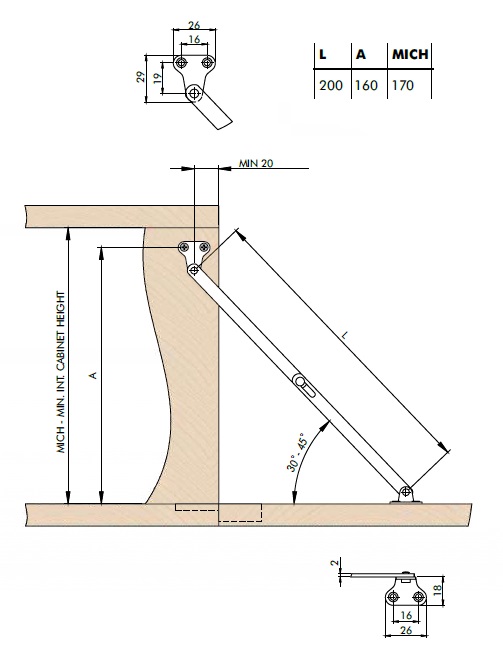 Кронштейн складной Metalimpex 200 мм угол открывания 30-45 градусов, никель. Арт: 820.2000.50
