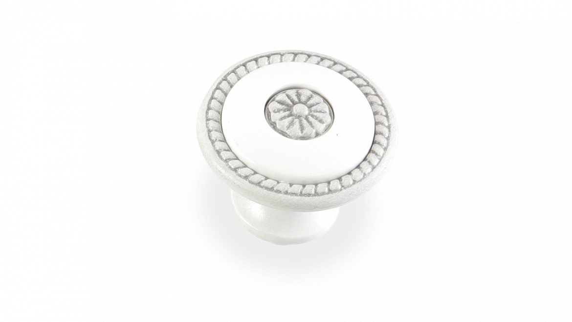 Ручка для мебели грибок Sagittario FB-027 000, 0 мм, серебро прованс/белый (ТЗ)
