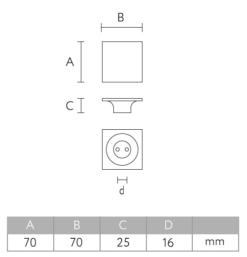 Ручка мебельная 70х70х25х16 мм, Дуб, Престиж Коричневый Прозрачный арт.Carre HL-016M-br-16
