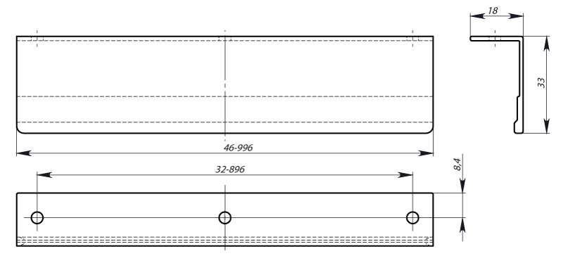 Ручка профильная для кухни Валмакс PN(14) 03.00.032.046 St, 32 мм, сатин светлый.