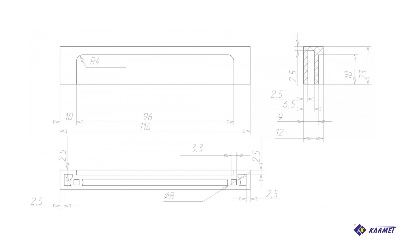Ручка квадратная Кламет РК 96, 96 мм, хром матовый