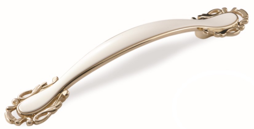 Ручка скоба для мебели Sagittario FS-141 096, 96 мм, золото/белый (ТЗ).