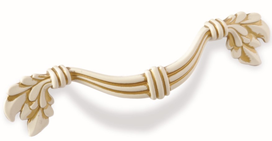 Ручка скоба для мебели Валмакс FS-180 096, 96 мм, золото прованс 1013 жемчужно-белый матовый (ТЗ).