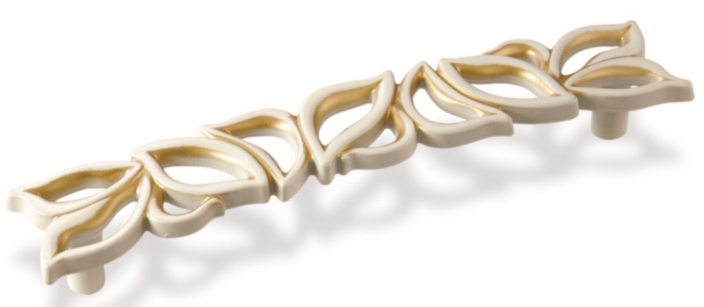 Ручка скоба для мебели Валмакс FS-189 128, 128 мм, золото прованс 1013 жемчужно-белый матовый (ТЗ).