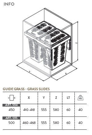 Корзина для белья, направляющие полного выдвижения Grass с доводчиком. Емкость 60 л. (2 х 30 л)