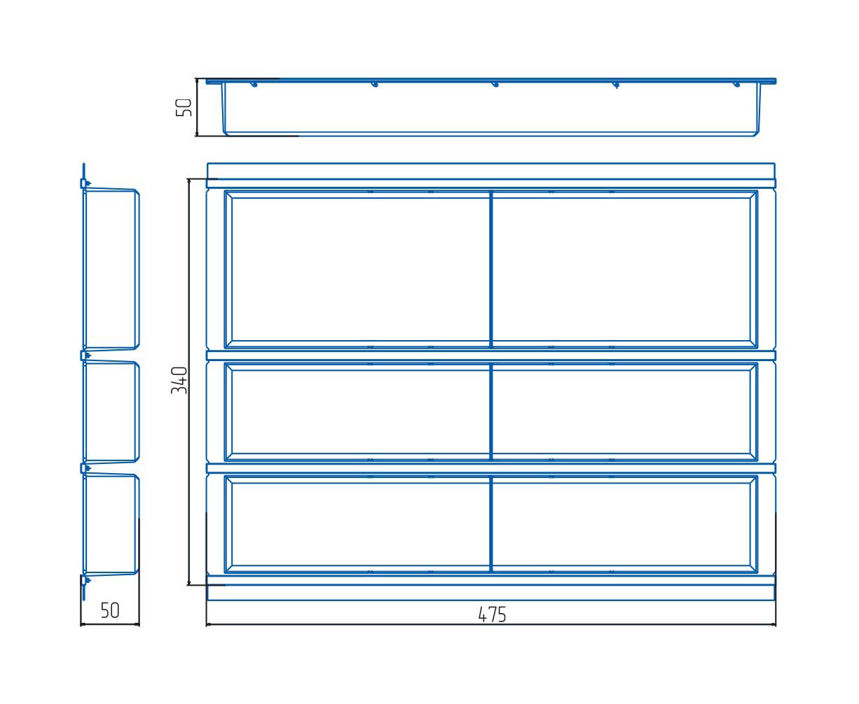 Лоток в ящик 450 мм (2м+1б) 472*340*46, прозрачный
