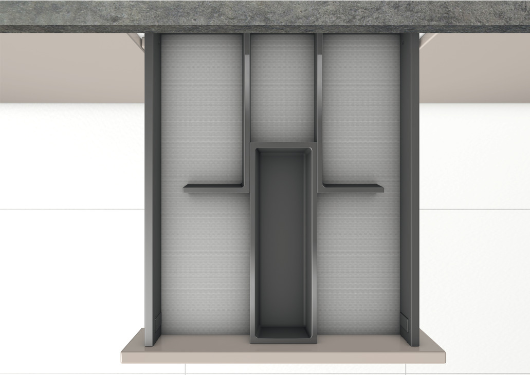 Система разделителей Connect создает порядок внутри ящиков. Элементы спроектированы в практичном формате 25 мм сетки, с гармоничным, прямым дизайном, и могут быть соединены друг с другом, образуя неограниченное количество вриантов компановки. Система работает с системой выдвижных ящиков любых производителей с любой глубиной и шириной.