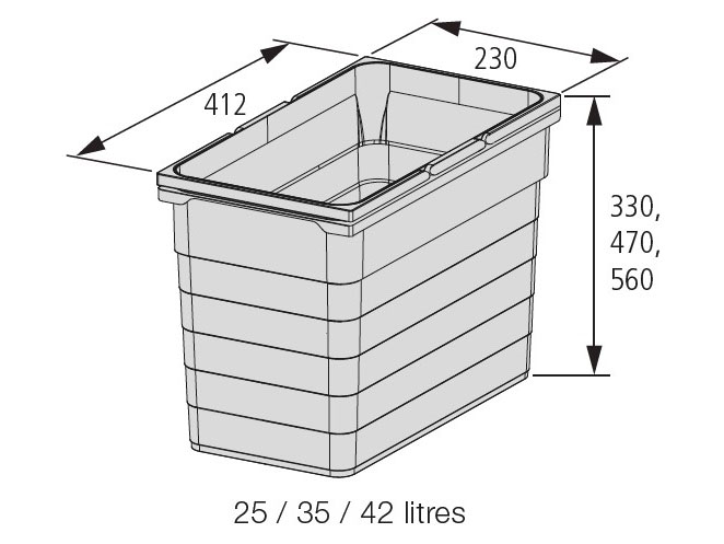 Система из 13 контейнеров различной вместимости и типоразмеров, которые можно использовать для практичного и эффективного разделения отходов или для хранения чистящих средств. Контейнер можно использовать как по отдельности, так и в комбинации с другими типоразмерами.