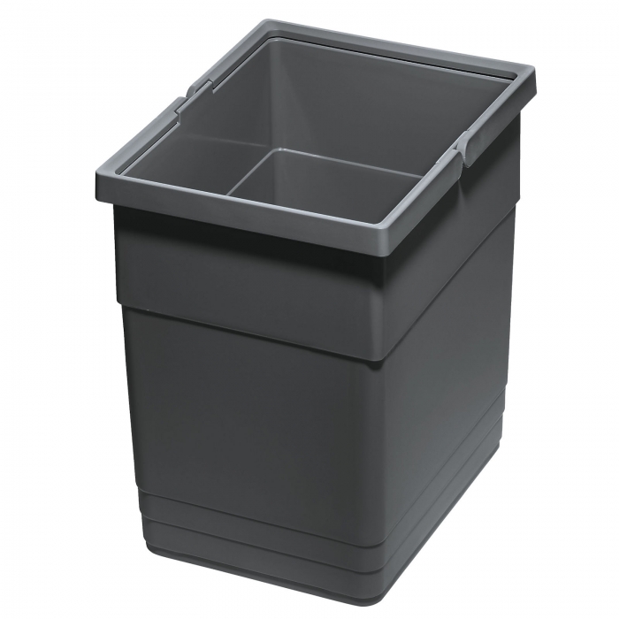 Изготовлены из литого под давлением пластика двух цветов (Серый алюминий и Темно серый), пригодного для вторичной переработки. Ручки из прочного стекловолокна служат для фиксации мусорных пакетов, а также для извлечения и переноски контейнера.