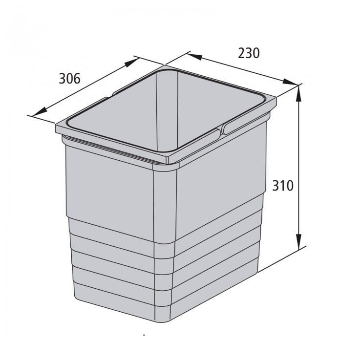 Изготовлены из литого под давлением пластика двух цветов (Серый алюминий и Темно серый), пригодного для вторичной переработки. Ручки из прочного стекловолокна служат для фиксации мусорных пакетов, а также для извлечения и переноски контейнера.