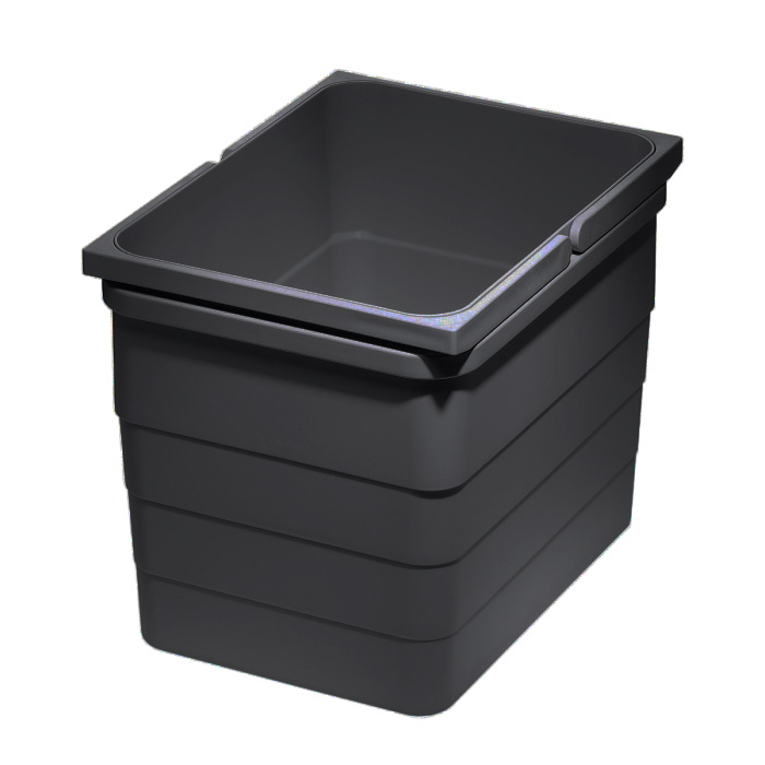 Изготовлены из литого под давлением пластика двух цветов (Серый алюминий и Темно серый), пригодного для вторичной переработки. Ручки из прочного стекловолокна служат для фиксации мусорных пакетов, а также для извлечения и переноски контейнера.