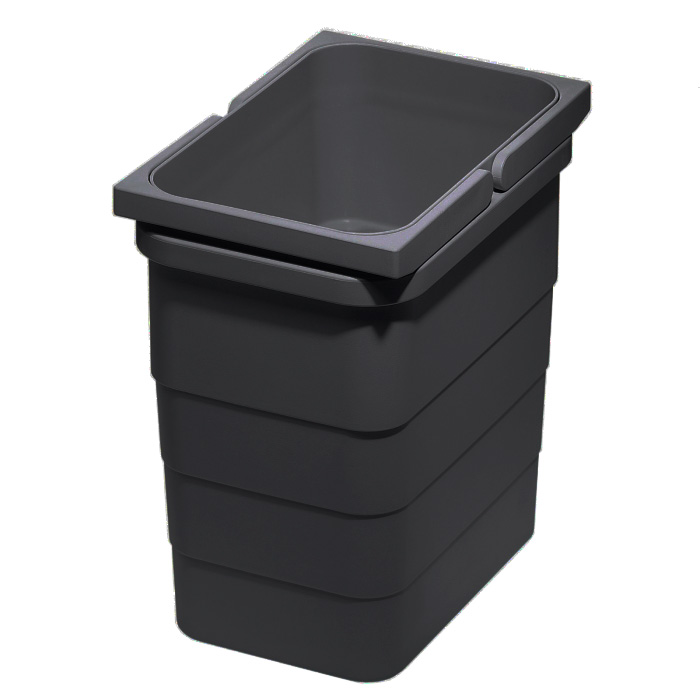Изготовлены из литого под давлением пластика двух цветов (Серый алюминий и Темно серый), пригодного для вторичной переработки. Ручки из прочного стекловолокна служат для фиксации мусорных пакетов, а также для извлечения и переноски контейнера.