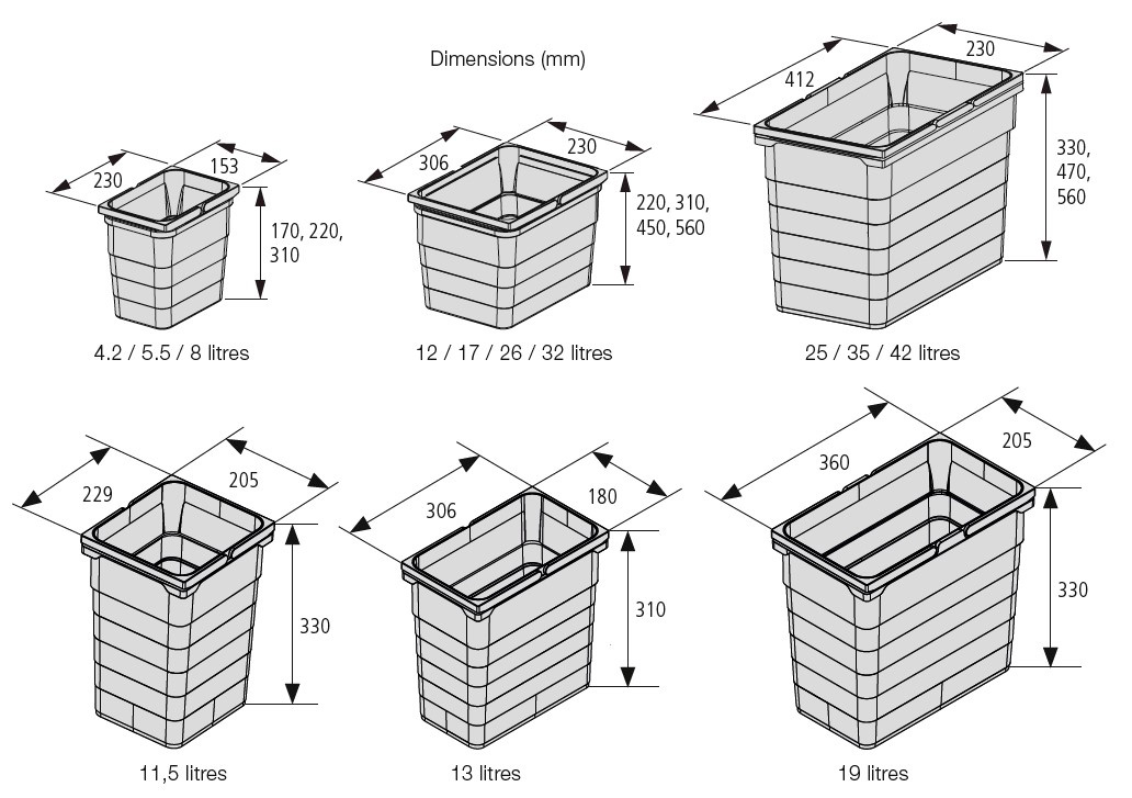 Система из 13 контейнеров различной вместимости и типоразмеров, которые можно использовать для практичного и эффективного разделения отходов или для хранения чистящих средств. Контейнер можно использовать как по отдельности, так и в комбинации с другими типоразмерами.