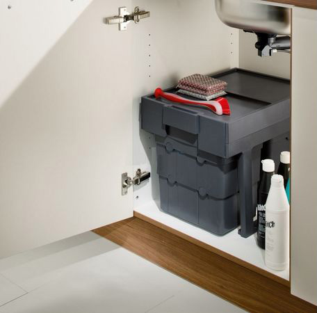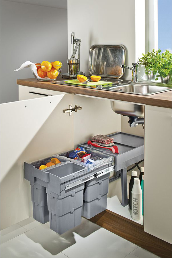 - Устойчивая отделка (RAL7040 Серый), оптимизированный дизайн и небольшие размеры зазора между ручками и ящиками обеспечивают чистое и гигиеничное разделение отходов;