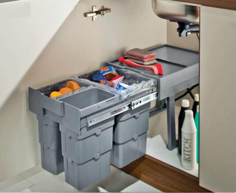 Компактная система сортировки отходов с двумя контейнерами для установки под раковину.