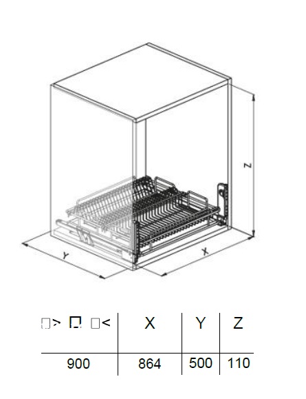 Сушка выдвижная в нижний ящик, глубина 500 мм, шкаф 900 мм арт.999T.900