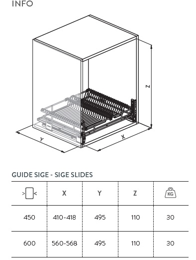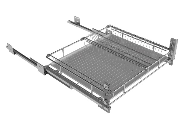 Сушка выдвижная в нижний ящик, алюминиевый поддон, направляющие полного выдвижения SIGE, доводчик, сушка из нержавеющей стали 204 (inox 204), глубина 500 мм, шкаф 900мм