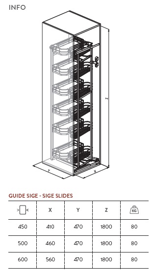 Колонна выдвижная, направляющие полного выдвижения SIGE, доводчик, 12 корзин, дно из меламина, корзина из круглой проволоки, шкаф 450мм