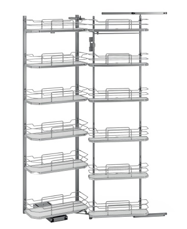 Колонна выдвижная, направляющие полного выдвижения SIGE, доводчик, 12 корзин, дно из меламина, корзина из круглой проволоки, шкаф 600мм