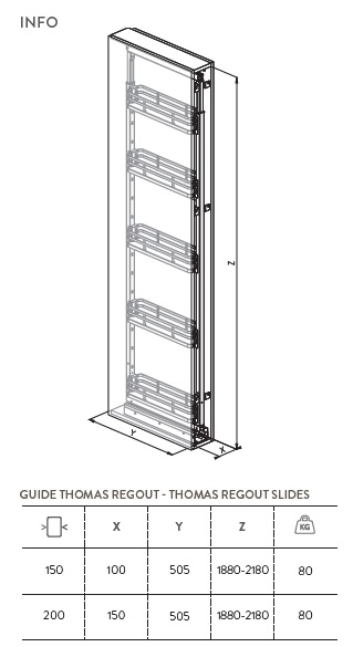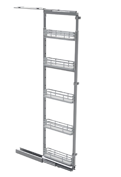 Колонна выдвижная, направляющие полного выдвижения Thomas Regout, доводчик, нагрузка 80 кг, 5 корзин, дно из меламина, корзина из плоской проволоки, шкаф 200мм