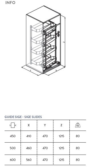 Колонна выдвижная, направляющие полного выдвижения SIGE, доводчик, 8 корзин из листового металла, шкаф 600мм