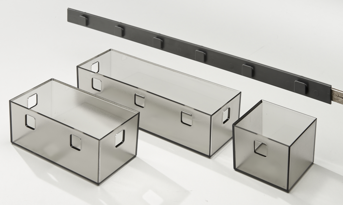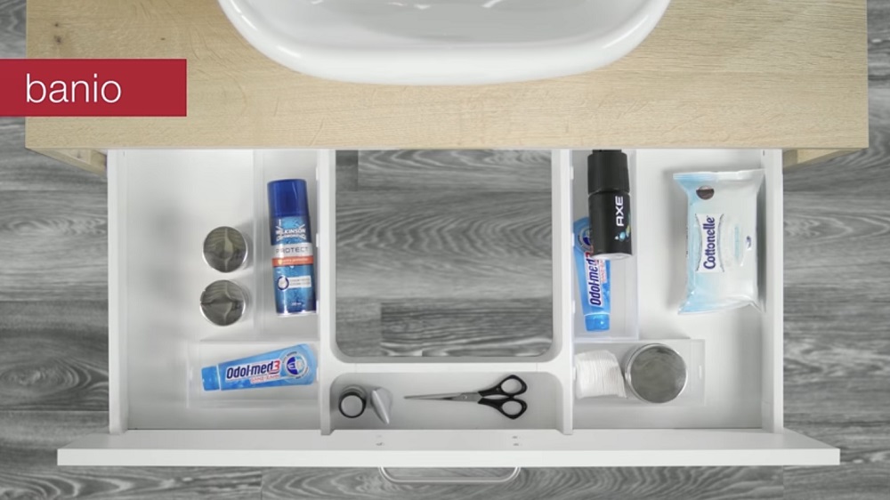 - Гибкое размещение маленьких, средних и больших вставок в ящике, в ящиках, в зеркальном шкафу, на полке или на стене.