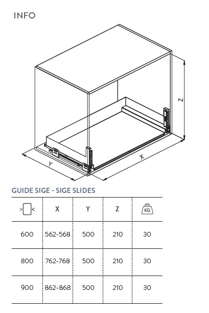 Ящик выдвижной, направляющие полного выдвижения SIGE, доводчик, из листового металла, шкаф 600мм. Нескользящий коврик в комплекте.