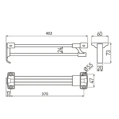 Обращаем внимание, что в наименовании товара указан габаритный размер штанги в задвинутом состоянии (L= 402 мм). Длина выдвижной части вешалки C = 370 мм.