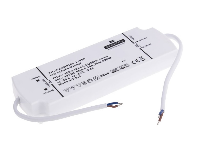 Блок питания SLIM LED PREMIUM 100W 12VDC IP44, провод 2х15 см арт.TRA-S-IP44-100W-T-01