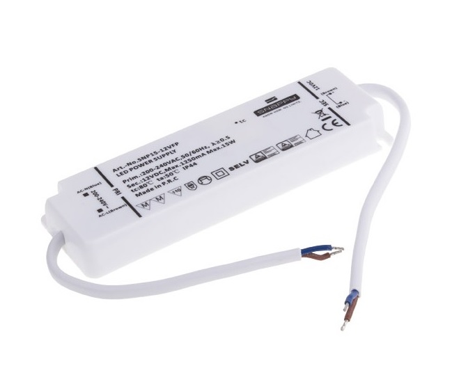 Блок питания SLIM LED PREMIUM 15W 12VDC IP44, провод 2х15 см арт.TRA-S-IP44-15W-T-01