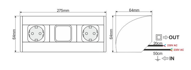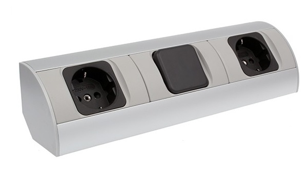 Розетка CORNER BOX 2xSchuco(розетка), 1 выключатель арт.CORNER-ALU-2G1W-DE-1