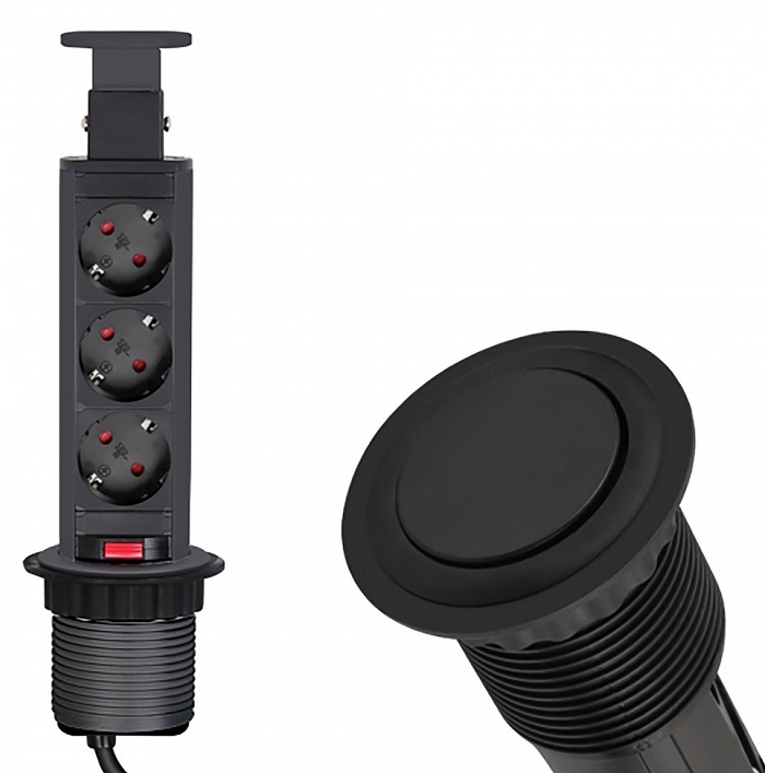 Удлинитель LIFT BOX 3xSchuco(розетка), черный, провод 1,8 м арт.LIFTBOX-CZ-3DE-01