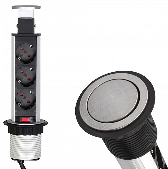 Удлинитель LIFT BOX 3xSchuco(розетка), серый, провод 1,8 м арт.LIFTBOX-STD-3DE-01