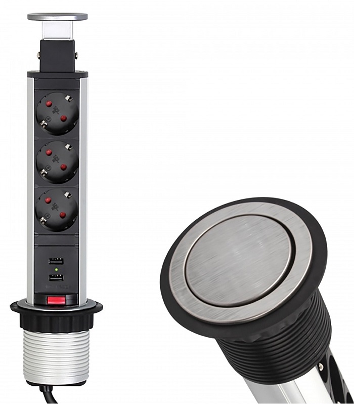 Удлинитель LIFT BOX 3xSchuco(розетка) 2xUSB, серый, провод 1,8 м арт.LIFTBOX-STD-3DE-U-01