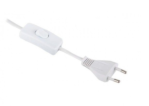 Провод с вилкой 2м 2x0,75mm2 с ручным выключателем белый арт.PRZ-2M-PC1-BIALY