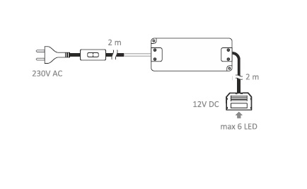 Блок питания LED STANDARD PLUS 7W 12VDC, черный провод 4 м, ручной выключатель, разветвитель 6 гнезд арт.U12-007-SP-2C1-206