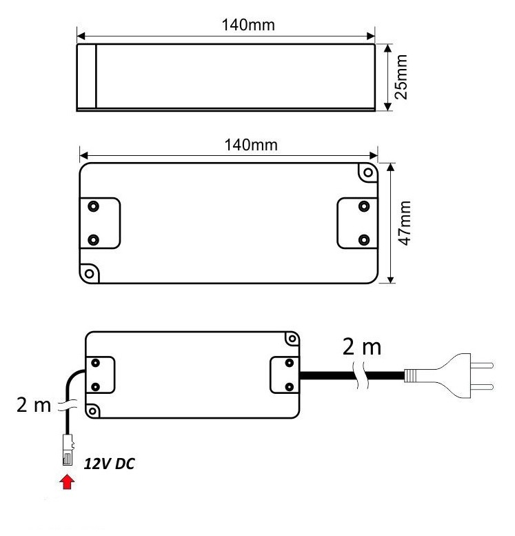 Блок питания LED STANDARD PLUS 12W 12VDC, белый провод 4 м, мини-гнездо арт.U12-012-SP-2B0-201B
