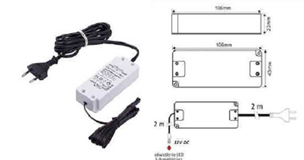 Блок питания LED STANDARD PLUS 12W 12VDC, черный провод 4 м, мини-гнездо арт.U12-012-SP-2C0-201