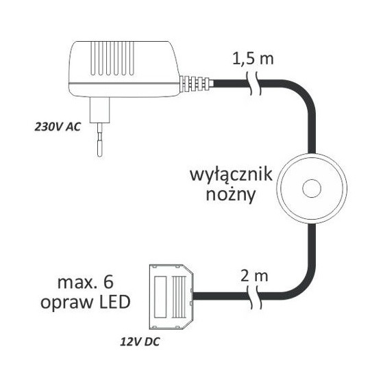 Блок питания LED 18W 12VDC, ножной выключатель, разветвитель 6 гнезд, провод 3,5 м арт.ZAS-SI-12DC-18W-MNW