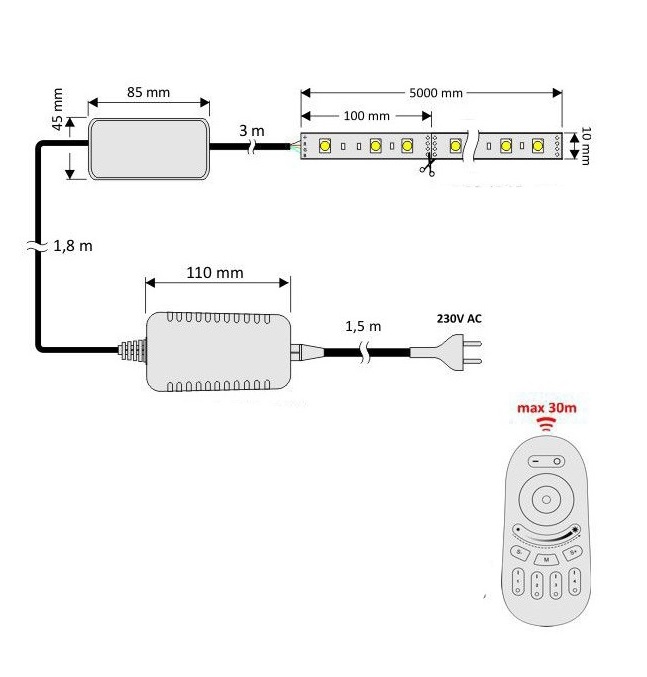 Комплект лента RGB 150 LED IP45 5m 10 мм, пульт RF RGB на 4 зоны блок питания PLD 38W/5m арт.ZLF-RGB-5M-02W