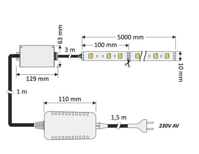 Комплект лента RGB 150 LED IP45 5m 10 мм, пульт RF RGB блок питания PLD 38W/5m арт.ZLF-RGB-5M-03W