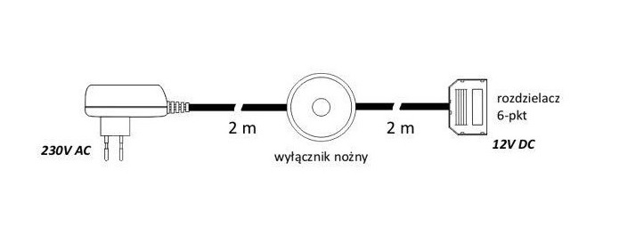 Блок питания LED 6W 12VDC, ножной выключатель, разветвитель 6 гнезд, провод 4 м арт.ZSI-12DC-6W-MIN-22W
