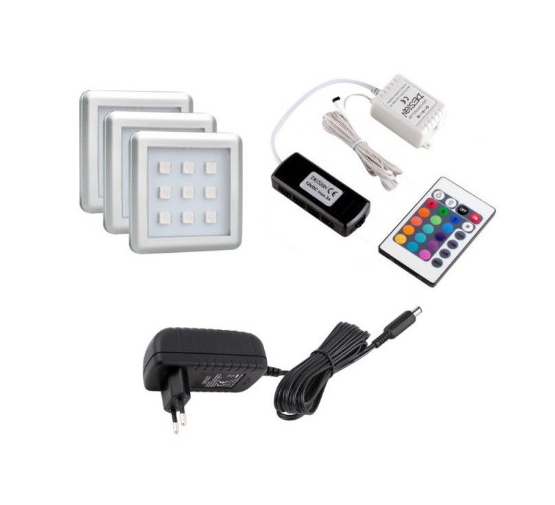 Комплект светильник LED SQUARE RGB (3 шт + пульт + блок питания), провод 2 м арт.ZSQUARE-RGB-3P-01W