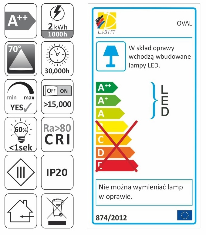 Светильник LED OVAL накладной 2,0W 12VDC 6000K, провод 2 м, белый арт.OVAL-2W-BI-DY-60K-01