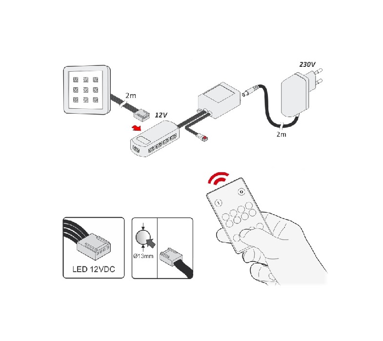 Светильник LED SQUARE 2 RGB, 2,0W 12VDC 9LED, провод 2 м, алюминий арт.SQUARE2-AL-RGB-01W