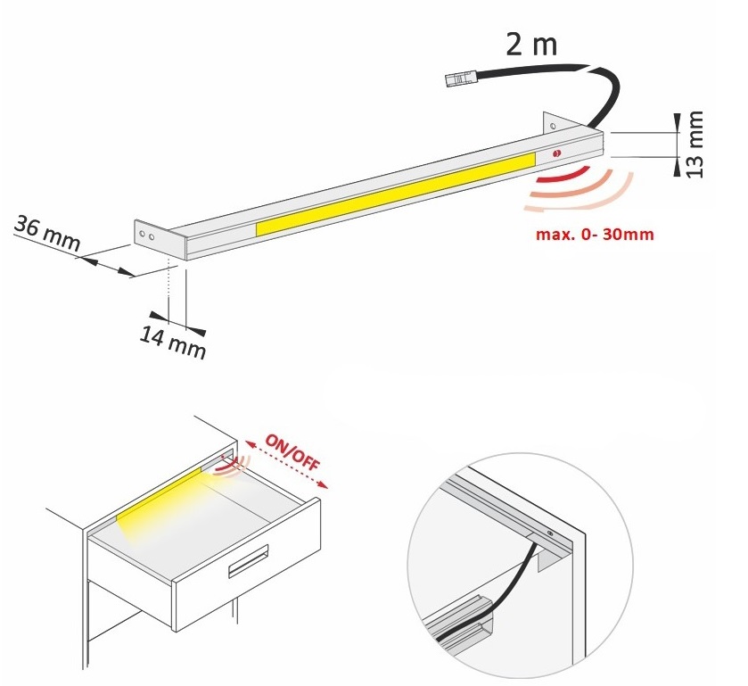 Светильник LED POLARUS P 864 мм, 8W 12VDC 6000К, провод 2 м, молочный рассеиватель арт.POLP-864-BZ-01W